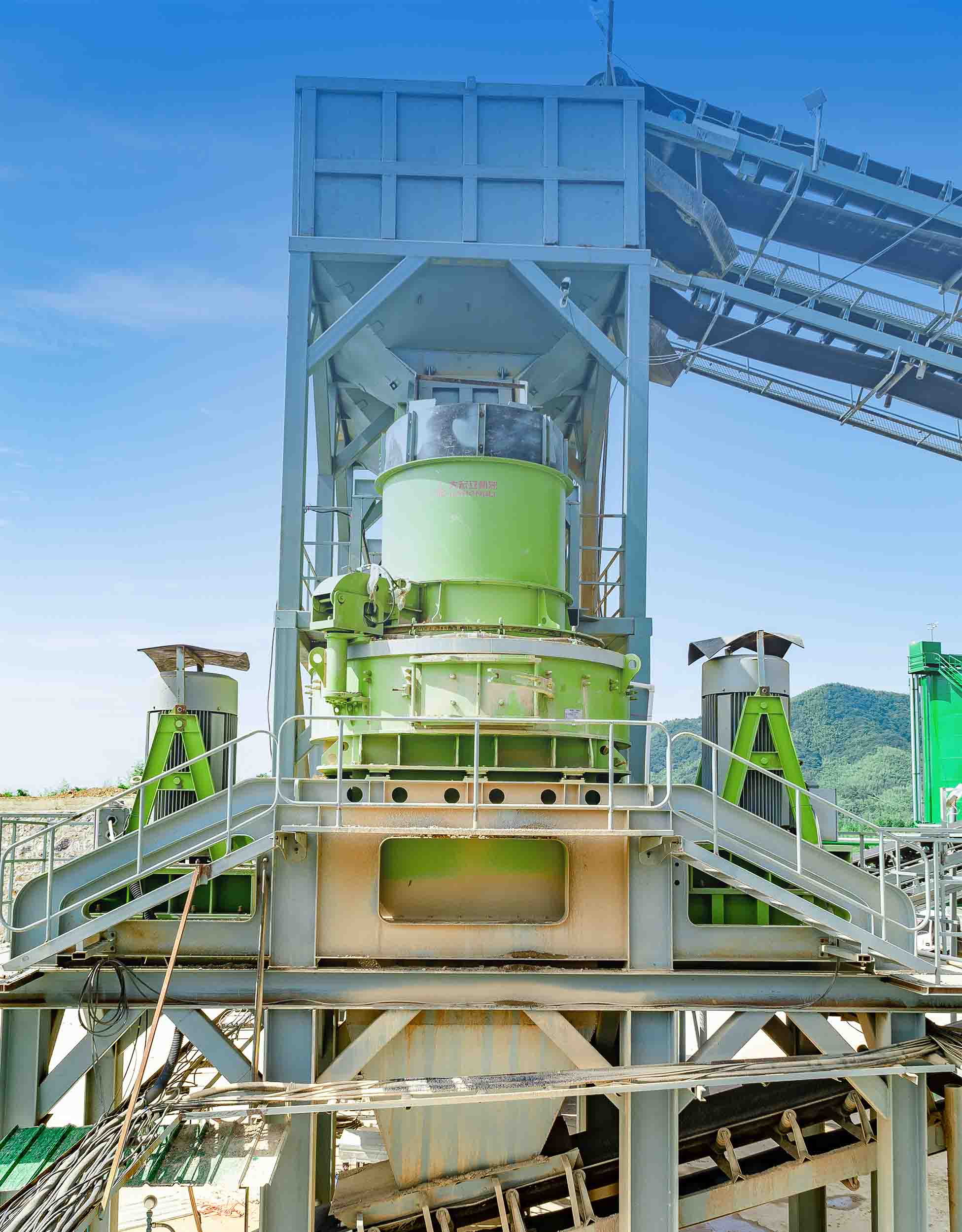 此條生產(chǎn)線以大鄂破機、單缸液壓圓錐破碎機、沖擊破制砂機、對輥機(高壓輥磨機)等主機為核心,采用全自動中央控制系統(tǒng),動態(tài)調(diào)整成品砂石比例,甚至可實現(xiàn)全制砂生產(chǎn)